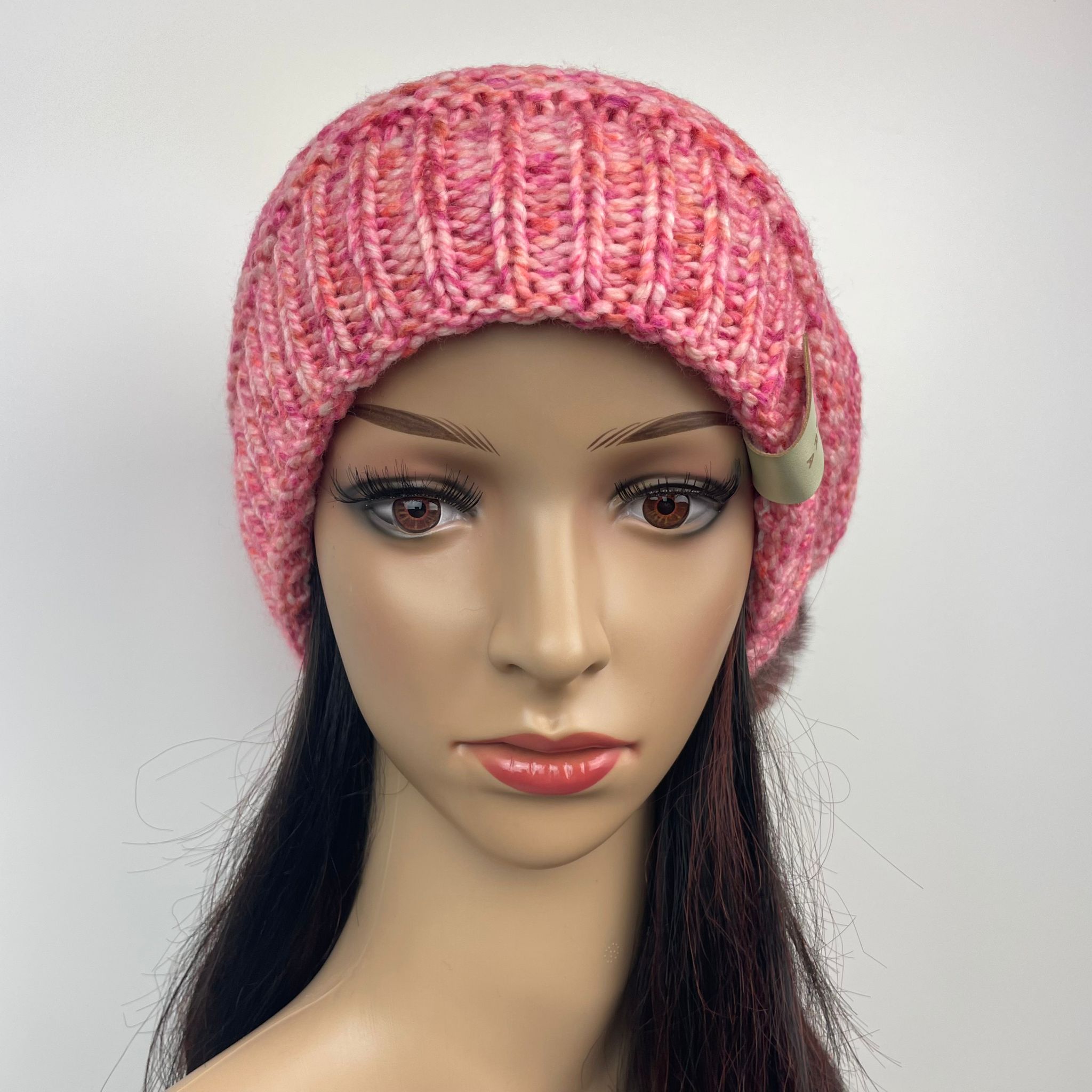 Pudelbeanie King-size, rosé-weiß meliert