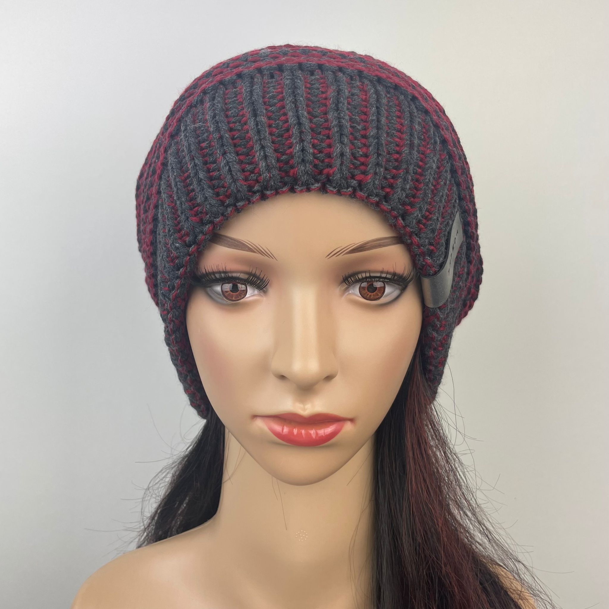 Beanie-Kingsize bordeaux-dunkelgrau-meliert